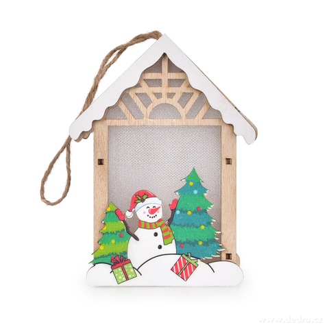 Kouzelný dřevěný domeček s motivem sněhuláka, zasněžených stromečků a dárků promění tvůj domov v zimní pohádku. Uvnitř se ukrývá LED světýlko s efektem mihotavého plamínku, které působí hřejivě a navodí příjemnou atmosféru.