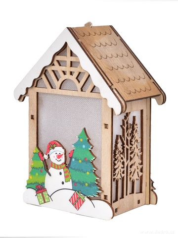 Kouzelný dřevěný domeček s motivem sněhuláka, zasněžených stromečků a dárků promění tvůj domov v zimní pohádku. Uvnitř se ukrývá LED světýlko s efektem mihotavého plamínku, které působí hřejivě a navodí příjemnou atmosféru.