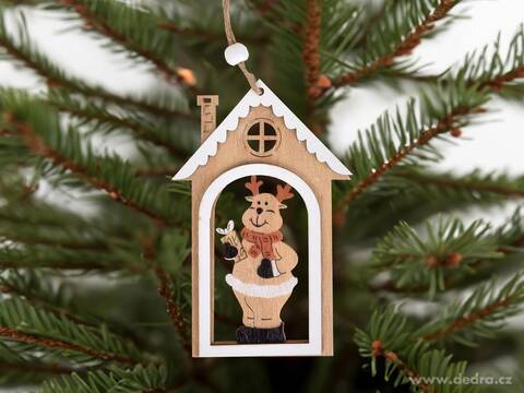 Roztomilý sob s dárečkem se ukrývá v malém dřevěném domečku, který vnese do interiéru útulnost a pohodu. Jemná kombinace přírodního dřeva, bílých akcentů a detailně propracované aplikace působí hřejivě a přirozeně.