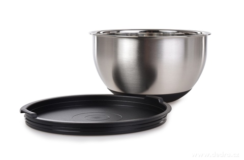 Mísa na kynutí těsta s víkem. Kombinace nerezu, silikonu a plastu.