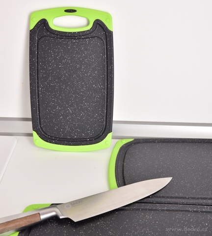 Díky oboustrannému provedení a protiskluzovým okrajům se zvyšuje bezpečnost a pohodlí při krájení masa, zeleniny, ovoce, pečiva i sýrů.
