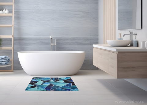SPA ultrasavá křemelinová koupelnová předložka 60 × 90 cm v moderním designu geometrix azur. Rychleschnoucí, protiskluzová a antibakteriální. Stylový a funkční doplněk do koupelny, kuchyně, předsíně i wellness.
