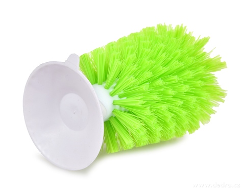 Kartáč na mytí sklenic se silikonovou přísavkou. Kombinace plastu a silikonu.