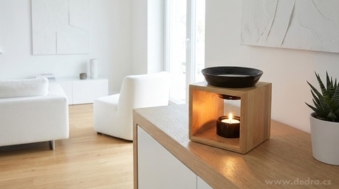 Díky jednoduchému, ale rafinovanému provedení se hodí do minimalistických, skandinávských i přírodních interiérů. Keramická miska je ideální pro vonné vosky i esenciální oleje.