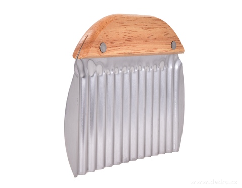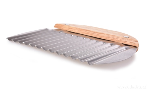 Elegantní vlnkovací kráječ GOURMET z dubového dřeva a nerezové oceli pro originální krájení okurek, brambor, mrkve či sýrů. Vytvoří ozdobné plátky i dokonalé vlnité hranolky pro stylovou prezentaci pokrmů.