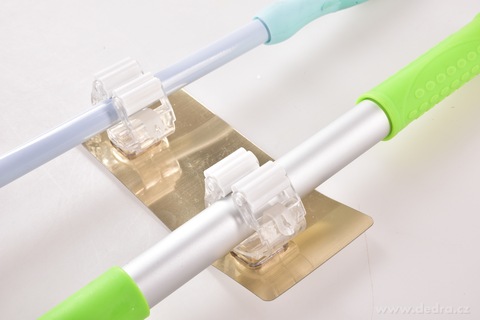 Univerzální dvojitý držák GENIUS na předměty do Ø 20 mm. Plast + silikon, samolepicí fólie pro montáž bez vrtání. Rozměr 20 × 5 × 8 cm. Praktické řešení do kuchyně, koupelny, dílny i kanceláře.