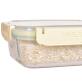 Skleněná krabička na potraviny s víčkem se silikonovým těsněním je kvalitní a trvanlivý produkt pro skladování a přepravu různých druhů potravin. Zde jsou některé vlastnosti tohoto výrobku: