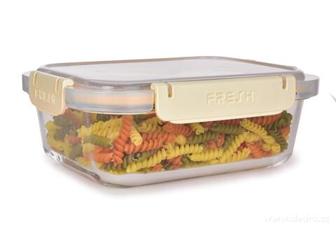 Skleněná dóza na potraviny FRESH GLASS s víkem se silikonovým těsněním a čtyřmi pevnými klipsy zajistí hermetické uzavření, díky kterému zůstane obsah chráněn před vzduchem a vlhkostí. Potraviny tak vydrží déle čerstvé a chutné.