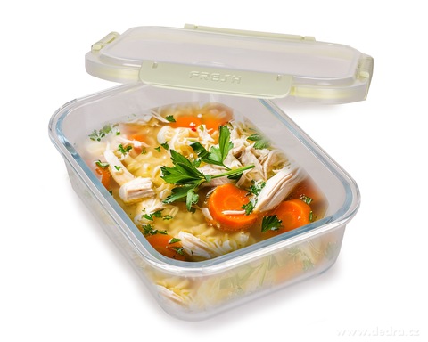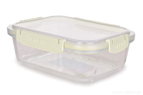 Díky silikonovému těsnění a uzavíratelným klipsům zůstane obsah bezpečně uvnitř – neotevře se a nevysype. Skleněná dóza na potraviny FRESH GLASS je vyrobena z kvalitního skla a pevného plastu, víko má čtyři klipsy a silikonové těsnění pro hermetické uzavření.