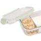 Vyrobena z odolného skla a pevného plastu, víko se čtyřmi klipsy a silikonovým těsněním zajistí hermetické uzavření, které chrání potraviny před vzduchem a vlhkostí, a tím prodlužuje jejich čerstvost.