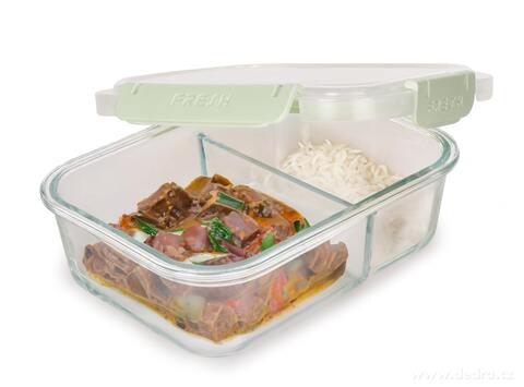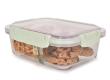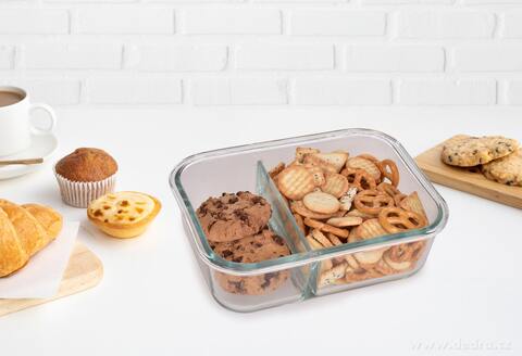 Skleněná krabička na potraviny s víčkem se silikonovým těsněním je kvalitní a trvanlivý produkt pro skladování a přepravu různých druhů potravin. Zde jsou některé vlastnosti tohoto výrobku: