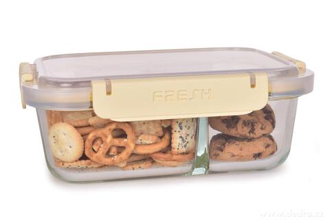 Skleněná krabička na potraviny s víčkem se silikonovým těsněním je kvalitní a trvanlivý produkt pro skladování a přepravu různých druhů potravin. Zde jsou některé vlastnosti tohoto výrobku: