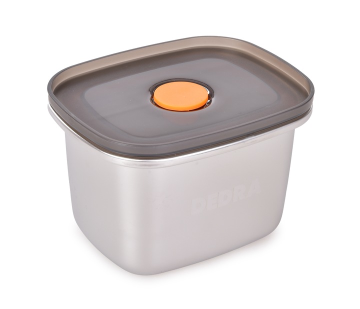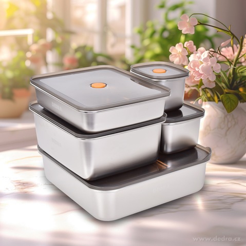 Nerezová hermetická dóza GOURMET ti pomůže uchovat svačiny a obědy čerstvé, chutné a bezpečně uzavřené. Díky pevnému víku se silikonovým těsněním a ventilem odolá otřesům v tašce a NEOTEVŘE SE ani NEVYSYPE – perfektní do práce, školy, na výlety i dovolené. Elegantní kartáčovaná nerezová ocel nejen skvěle vypadá, ale je i hygienická, odolná a neabsorbuje pachy.