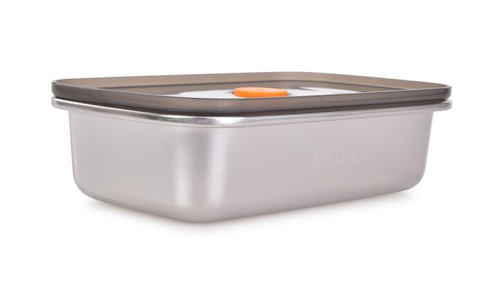 Nerezová dóza GOURMET (600 ml) je vybavena průhledným víkem se silikonovým těsněním a ventilem, které zajistí bezpečné hermetické uzavření – box se neotevře ani nevysype, a přitom udrží potraviny čerstvé a šťavnaté. Kvalitní kartáčovaná nerezová ocel je odolná, hygienická a stylová, proto je dóza ideální pro využití v práci, škole, na výletech, dovolené i v domácí kuchyni.