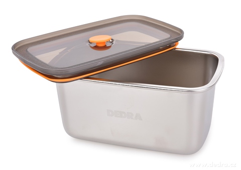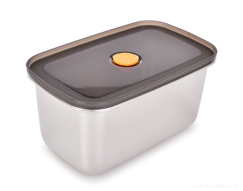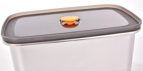 Nerezová dóza GOURMET 1,3 L s průhledným víkem, silikonovým těsněním a ventilem dokonale těsní – chrání potraviny před vysypáním, vzduchem i vlhkostí. Stylová, trvanlivá a hygienická pro svačiny, obědy do práce, krabičkové diety i skladování doma.