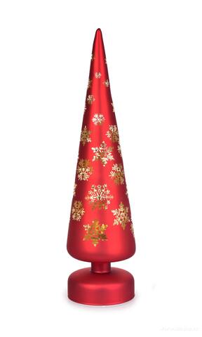 Červený LED stromeček ZIMNÍ HVĚZDA se zlatými sněhovými vločkami a teplým bílým světlem. Elegantní dekorace o výšce 30 cm vnese do interiéru kouzelnou vánoční atmosféru, pohodu a slavnostní lesk.