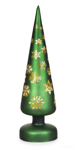 Zářivý zelený LED stromeček se zlatými vločkami a výškou 31 cm rozzáří váš domov klidným světlem. Kouzelný doplněk s jemným leskem přinese vánoční náladu plnou pohody a nostalgie.