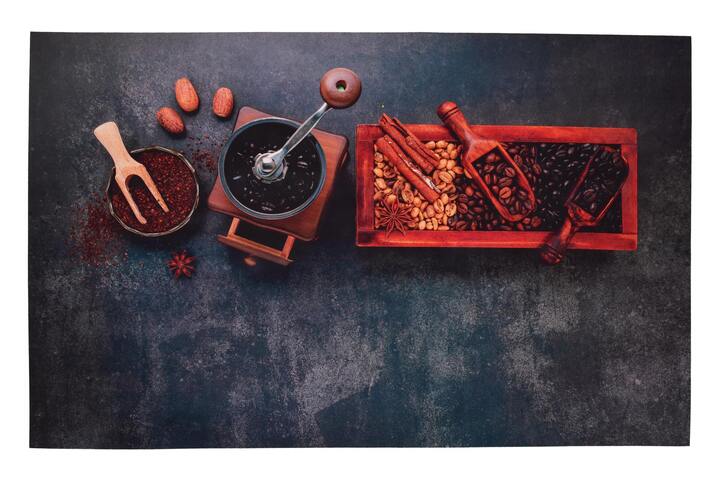 SPA – ultrasavá křemelinová předložka 80 × 50 cm s motivem kávy a koření. Rychleschnoucí, protiskluzová a antibakteriální. Praktický a elegantní doplněk do koupelny, kuchyně, předsíně či wellness.