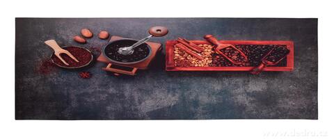 SPA – ultrasavý křemelinový běhoun 120 × 40 cm s motivem kávy a koření. Rychleschnoucí, protiskluzový a antibakteriální. Praktický a elegantní doplněk do koupelny, kuchyně, předsíně či wellness.