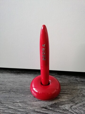Magnetický stojánek způsobuje "levitaci" kuličkového pera, díky které se pero vznáší svisle uprostřed stojánku.