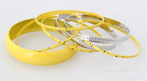 Set 7mi kovových náramků ve žluté a stříbrné barvě.