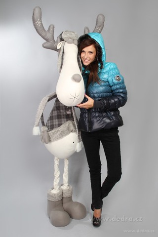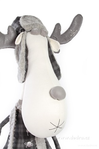 Stojící XXXXL MAXIsobík Alfons vysoký 2 metry (!!!!). Dokonale propracované detaily – pletená šála, jemná kožešinka zdobící beranici, kabát i boty, ohebné ruce.