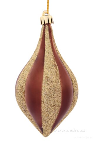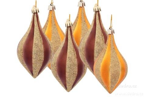 6 ks ozdob ve tvaru kapky v tónech zlaté a čokoládové, kombinace lesk a třpyt, výška: 11,5 cm