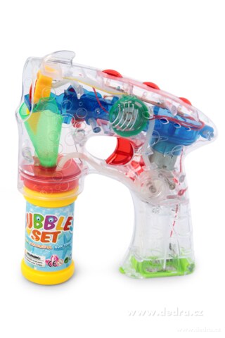 Automaticky tvoří bubliny, svítí a hraje. Náplň zašroubujte do pistole a užijte si bublinovou zábavu! Na 3 AA (tužkové) baterie (nejsou součástí). Sada obsahuje bublifukátor + náplň 60 ml.