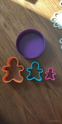 3 ks vykrajovátek v jasně barevné uzavíratelné dóze. Délka vykrajovátek cca 9 cm + 7 cm + 4,5 cm, výška: 2,5 cm, materiál: tvrzený plast, mix barev*.