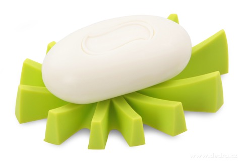 Netradiční stojánek na tuhá mýdla (zelený) – do koupelny i kuchyně. Kromě skvělého designu jistě oceníte i to, že přímo pod mýdlem nikdy nezůstane voda, takže mýdlo zbytečně neubývá. Materiál: silikon, rozměr: 12 x 8,5 x 3 cm.