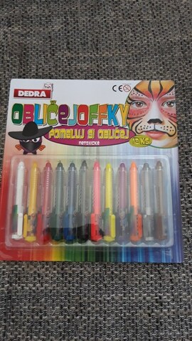 OBLIČEJOFFKY | 12 barev na obličej a tělo v praktických tyčinkách. Netoxické a vodou omyvatelné. Ideální pro děti na karnevaly, oslavy, školní akce i domácí tvoření. Bezpečné složení, snadné nanášení bez štětce. Pro zábavné líčení a kreativní hrátky.