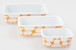 Zapékací/ohřívací a ukládací mísy se silikonovým víkem. Praktické při skladování – všechny mísy se vejdou do sebe (nezaberou místo). Rozměry/objemy: 12 x 9 x 4,5 cm/250 ml, 18,5 x 12 x 5 cm/700 ml, 21,5 x 15 x 5,5 cm/1000 ml.