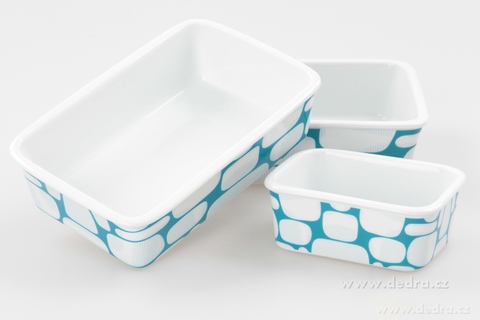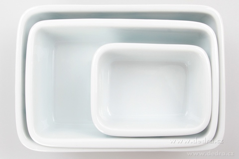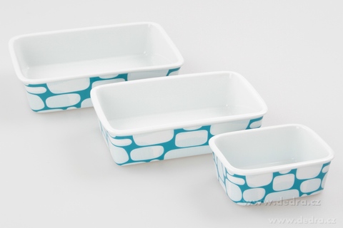 Zapékací/ohřívací a ukládací mísy se silikonovým víkem. Praktické při skladování – všechny mísy se vejdou do sebe (nezaberou místo). Rozměry/objemy: 12 x 9 x 4,5 cm/250 ml, 18,5 x 12 x 5 cm/700 ml, 21,5 x 15 x 5,5 cm/1000 ml.