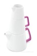 set 3v1: Kompaktně do sebe zapadají při skladování. Výška postavené pyramidy cca 25 cm. konvice 700 ml na kávu nebo čaj, hrnek 300 ml konvička 150 ml na mléko nebo sirup.