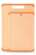 Z odolného plastu s ABS protiskluzovými okraji. V horní části otvor na zavěšení. Vyrobeno z odolného plastu – možno mýt v myčce nádobí. Vhodné pro ocelové i keramické nože. Rozměr: Š 24 x H 16 x V 0,9 cm.
