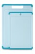 Z odolného plastu s ABS protiskluzovými okraji. V horní části otvor na zavěšení. Vyrobeno z odolného plastu – možno mýt v myčce nádobí. Vhodné pro ocelové i keramické nože. Rozměr: Š 24 x H 16 x V 0,9 cm.