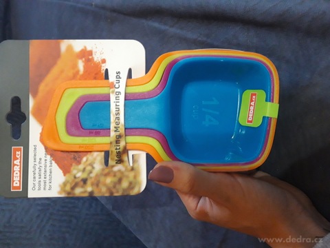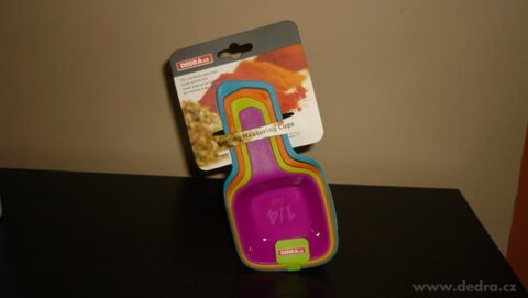 Rozměry ve složeném stavu: 16 cm x 8,5 cm x 5,5 cm. Materiál: tvrzený plast Objemy: 1 hrnek = 250 ml 1/2 hrnku = 125 ml 1/3 hrnku = 80 ml 1/4 hrnku = 60 ml Lze mýt v myčce náhodný mix barev*