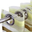 S kovovými kroužky (vnitřní průměr 4 cm) k dekoraci závěsné tyče. Rozměr: šířka: 140 x délka: 245 cm (!!!). 100% polyester. Můžete zkrátit podle potřeby. Můžete použít také jako nápadítý polotransparentní závěs, který doladí interiér k dokonalosti. Barevné pruhy jdou vždy ve třech různých ladících odstínech, transpatentní část je jemně zabarvená.