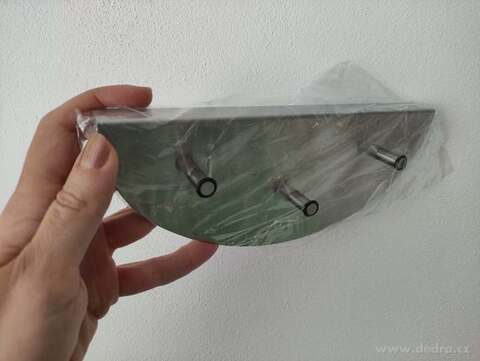 půlkruhový věšák se 3 háčky (21 x 8 cm). Lze zavěsit na dveře do šířky 1,7 cm.