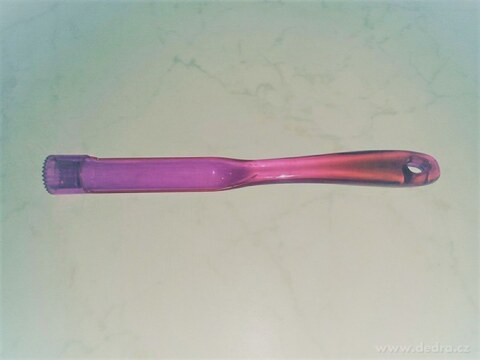 S praktickým otvorem k zavěšení. Pomocník pro snadné a rychlé odstranění jádřince z jablek nebo hrušek. Délka: 21,5 cm, průměr: 2 cm, odolný transparentní plast.