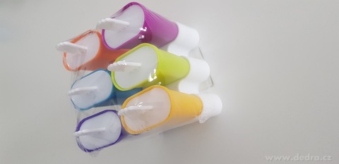 Rozměry jednotlivých forem na nanuky: Š 5,5 x H 3 x V 9,5 cm (objem: 6 x cca 60 ml)