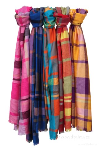 Kostkovaný pléd multicolor, 60% bavlna, 40% PAN, cca 70 x 185 cm.