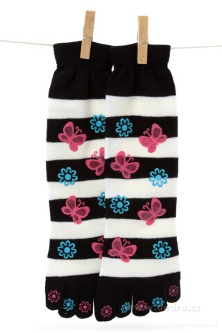 Prstové vyšší ponožky s veselým potiskem, univerzální velikost, protože nemají zvýrazněnou patu. Celková délka 34 cm. 100% PAN.