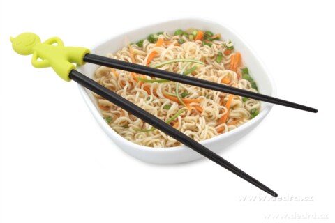 Sada jídelních hůlek se silikonovou postavičkou. S těmito jídelními hůlkami se během okamžiku naučí jíst úplně každý. Díky silikonové postavičce Vám jídelní hůlky při konzumaci nevyskočí z ruky a snadno uchopíte každé sousto. Stolování bude nyní mnohem zábavnější. Výška silikonové postavičky cca 6,5 cm, délka hůlek včetně silikonové postavičky cca 25 cm.