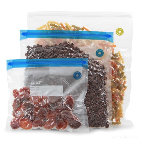 Sada 4 ks vakuovacích sáčků VZDUCHOCUC® 3 L s ventilkem uchová potraviny déle čerstvé – vzduchotěsně a vodotěsně. Vhodné na mražení, marinování, sous-vide i skladování uzenin, zeleniny a masa. Opakovaně použitelné, s popisovacím polem pro datum a obsah.