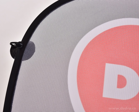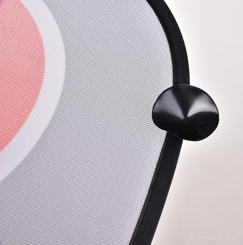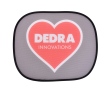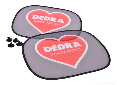 Oválný tvar s logem DEDRA. Výrazně omezují průnik tepla do auta. Nepoužívané clony lze pohodlně složit zpět.