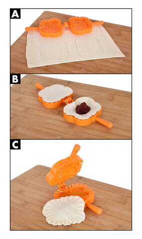 Forma na plněné taštičky, odolný plast, rozměr cca 10 cm x 10 cm Ideální na: taštičky z listového těsta s marmeládou, čokoládou, mletým masem, sýrem… Masové pirohy se zelím, sladké pirohy s mákem, tvarohem, marmeládou nebo ovocem. Bramborové taštičky s uzeným masem, povidly. Koblihy s marmeládou, nutelou.