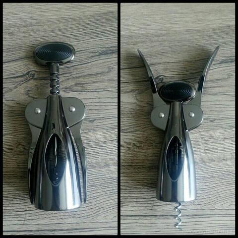 KORKOTVÍRÁK – celokovový pákový otvírák na víno s křidélky, kouřově černý design, protiskluzové prvky, snadné otevírání lahví, stylový dárek pro milovníky vína.