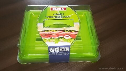 Chladící podnos s víkem a důmyslným chlazením. Patrony vyjměte, dejte do mrazáku a v případě potřeby máte PŘENOSNOU CHLADNIČKU. V zimě využijete na chlebíčky a cukroví. V létě na zákusky a sendviče. Ideální na servírování na večírcích, banketech a oslavách. Chladící patrony pod podnosem zajistí, že potraviny budou mít optimální teplotu. Oceníte při servírování chlebíčků, zákusků, krémových dortíků a cukroví. Díky chladící patroně je potravina ve VODNESFŠECKU déle čerstvá = jako kdyby byla uchovávána v chladničce. Chladící patrona je umístěna ve spodní části VODNESFŠECKA, aby neubírala prostor upečeným dobrotám. Před použitím je třeba patronu vychladit vložením do mrazničky a poté umístit na dno VODNESFŠECKA. Vyrobeno z tvrzeného plastu. Vhodné do chladničky i mrazničky.