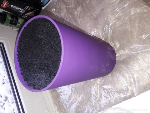 CARBONIT – moderní fialový tyčinkový stojan na nože s univerzální vložkou, která chrání ostří a přizpůsobí se každému tvaru čepele. Stylový a praktický doplněk pro bezpečné uložení nožů v každé kuchyni.